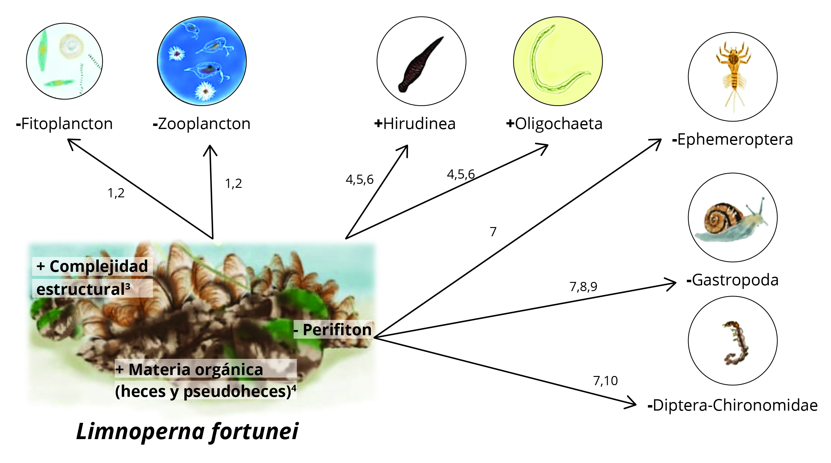 Burlakova, L.E., Karatayev, A.Y. y Karatayev, V.A., 2012. Invasive mussels induce community changes by increasing habitat complexity. En: Hydrobiologia, 685, pp.121-134. DOI: https://doi.org/10.1007/s10750-011-0791-4