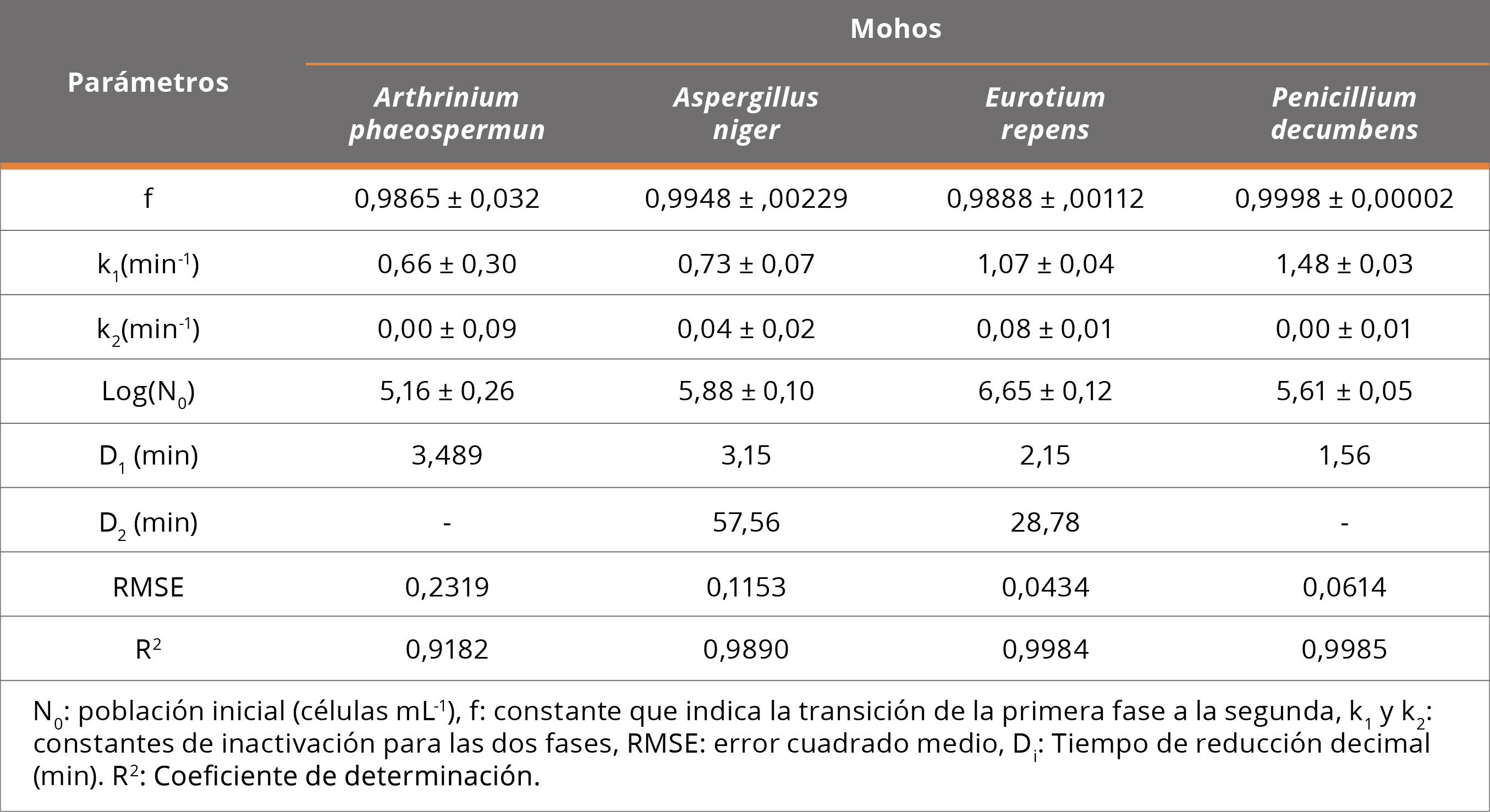 Cerf, O., 1977. Tailing of survival curves of bacterial spores. En: Journal of Applied Bacteriology, 42, pp.1-19. DOI: https://doi.org/10.1111/j.1365-2672.1977.tb00665.x