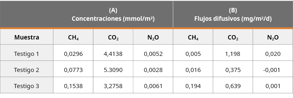 Este trabajo representa el primer reporte que se realiza en Uruguay sobre la implementación de la técnica para cuantificar gases de efecto invernadero (GEI) y sus flujos difusivos a través de la interfase sedimento-agua. El estudio fue realizado en el embalse Rincón del Bonete, ubicado sobre el Río Negro. La técnica aplicada permitió determinar las concentraciones de GEI (CH4, CO2 y N2O) en los sedimentos. El CO2 y el CH4 fueron los gases con mayor concentración por m2 de sedimento. En lo referente a sus flujos difusivos, el CO2 (máx. = 1,198 mg/m2/d) fue superior al CH4 (máx. = 0,194 mg/m2/d) y al N2O (máx. = 0,02 mg/m2/d). Si bien los valores determinados fueron bajos comparados con otros sistemas, se necesitaría profundizar en los estudios temporales y espaciales para valorar mejor la magnitud de los flujos de GEI. Debido al aumento de la intensidad de las actividades humanas y a los efectos del cambio climático, los cuales promoverían el aumento de floraciones algales, sería de esperar que -tras su descomposición- se incrementara la liberación de GEI en el embalse en un futuro.