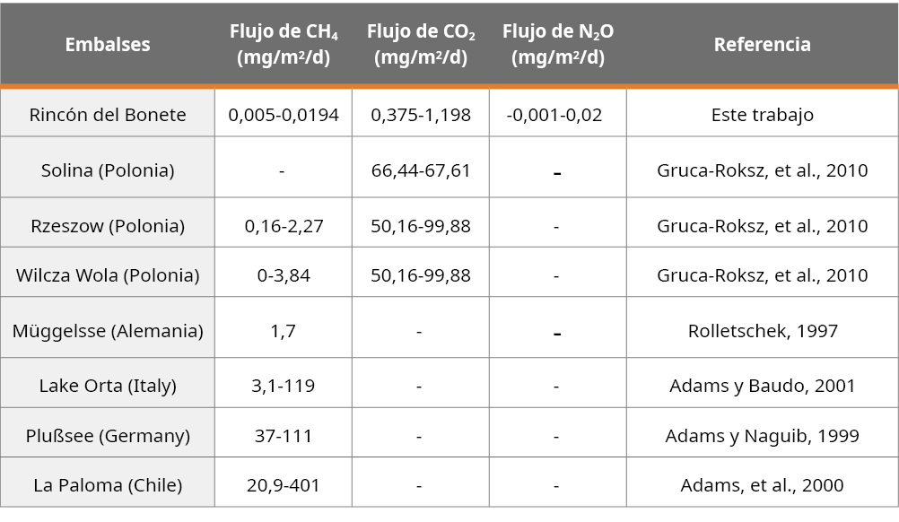 Gruca-Roksz, R., Tomaszek, A., Koszelnik, P. y Czerwieniec, E., 2010. Methane and carbon dioxide fluxes at the sediments-water interface in reservoirs En: Polish Journal of Enviromental Study, 20, pp.81-86.